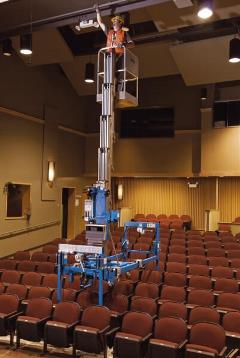 Manually propelled MEWPs offer a similar work height to many powered lifts, as well as comparably low floor load for sensitive surfaces such as gymnasiums, theaters and stages. They also offer similar degrees of compact maneuverability for congested jobsites, single or double door access and emission-free elevation.